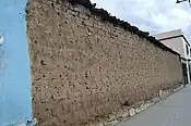 | Un muro es una estructura independiente, diseñada para restringir o evitar el movimiento a través de un límite o lindero, normalmente hecho de ladrillo macizo, hormigón o rocas, y casi siempre construido de modo que sea opaco a la visión. |