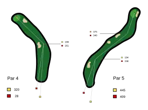 | Doglegs típicos. Izquierdo: «dogleg izquierdo». Derecho: «doble dogleg» |