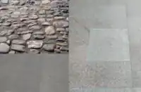 Nótese la diferencia entre surface=asphalt y surface=unhewn_cobblestone - ambos podrían ser etiquetados como surface=.
