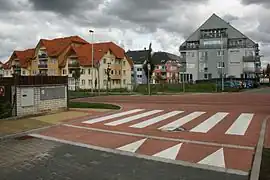 | Una meseta de velocidad utilizada para animar al tráfico a conducir más despacio. Es más gradual que los badenes y los resaltos de velocidad. |