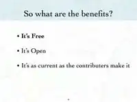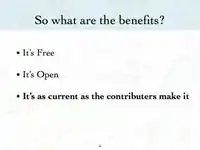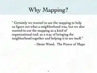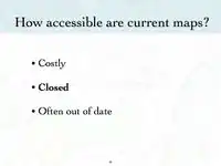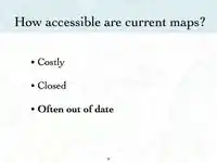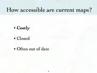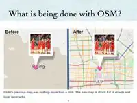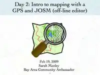 User: Sarah M presented an introduction to OpenStreetMap on to the February 17, 2009. You can view and download her presentation below. This presentation discusses why OpenStreetMap exists and how potlatch (OSM's online editor), functions. Below this presentation is another shorter presentation focused on how to use JOSM (OSM's offline editor).