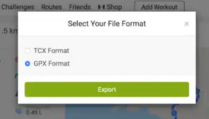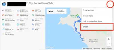 - Find the details view for your track, then press arrow down (⌄) and Export: