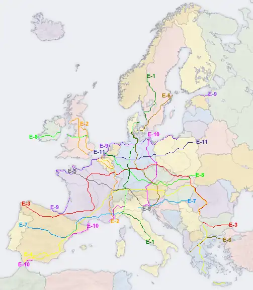 The European long-distance paths are a network of extremely long-distance footpaths across Europe. While most long-distance footpaths in Europe are located in just one country or region, each of these numbered European long-distance paths passes through many different countries. The European long-distance paths were designated by the European Ramblers' Association. In general the routes make use of existing national and local trails such as the GR footpaths.