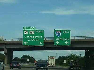 This exit has no visible number signage. Unnumbered exits are common on controlled-access U.S. routes and state highways in many parts of the U.S., as well as on Interstate freeways in California.