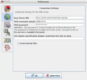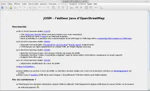 Créer un compte utilisateurAvant de commencer, vous aurez besoin d'un compte utilisateur que vous aurez créé au préalable sur le site d'OpenStreetMap (différent du compte wiki) et qui vous permet de modifier la base de donnée OSM. Notez bien votre nom d'utilisateur (une adresse email) et votre mot de passe. Installation de JOSML'éditeur, que la plupart des membres d'OSM utilisent, est l'éditeur Java JOSM. [ citation demandée ] Téléchargez la dernière version de JOSM. Aucune installation n'est nécessaire. Pour démarrer, il faut juste avoir un environnement Java version 1.5 ou plus ancien présent sur l'ordinateur.