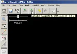 Transférer les données vers OSMVous avez pris maintenant connaissance des commandes et outils de base pour modifier et ajouter des données. Passons maintenant à la dernière étape qui est le transfert des données vers la base d'OpenStreetMap. Notez que ce transfert est définitif et aucun retour en arrière n'est possible (on peut éventuellement utiliser une des sauvegardes hebdomadaires de l'ensemble de la base de données mais c'est une opération lourde qui n'est pas à la portée de tous). Si vous êtes sûr de votre travail, sélectionnez dans le menu "Connection" l'entrée "Upload to OSM" ou cliquez sur le bouton approprié en haut de l'écran. JOSM affiche la liste de tous les éléments que vous avez modifié, ajouté ou supprimé. Si vous approuvez, les données sont ensuite transférées vers le serveur : ![]() ![]()