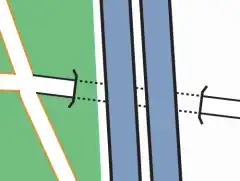 Pour un croisement dénivelé ou un passage sous une autre voie, vous devez vous fonder sur la construction pour déterminer s'il s'agit d'un tunnel ou d'un passage sous un pont bridge.