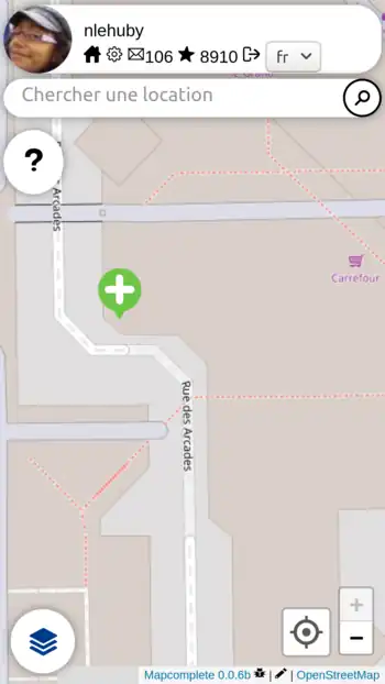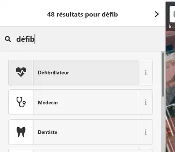 Cliquez sur la carte à l'endroit où se trouve le défibrillateur. Une fois fait, vous pouvez rechercher "défibrillateur" dans la barre de recherche à gauche.