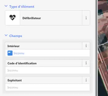 Cliquez sur "Suivant", puis sur "Défibrillateur". Vous pouvez désormais remplir les champs avec les infos récoltées.