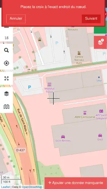Déplacez la carte pour positionner la croix à l'endroit exact où se situe le défibrillateur.