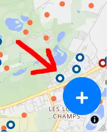 Sur le terrain, sur votre smartphone, vous pouvez contribuer à l'aide de l'application Maps.me. Pour ce faire, cliquez sur le bouton "Ajouter un lieu sur la carte"