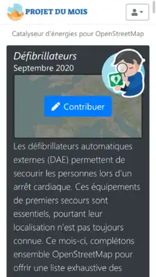 ![]() ProjetDuMois.fr permet d'ajouter des défibrillateurs, trouver ceux manquants et accéder aux statistiques du projet. |