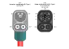 Connecteur Type 2 Format validé comme standard européen, le plus courant pour les nouvelles stations AC tel que l'impose la directive 2014/94/EU[4] Cette étiquette doit être utilisée s'il y a un câble attaché en permanence au chargeur. |