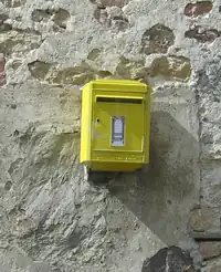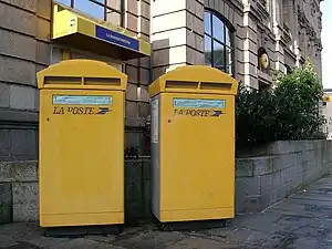 En France, les boîtes aux lettres sont opérées par "La Poste", très souvent de couleur jaune (même si les grandes boîtes peuvent aussi être grises).