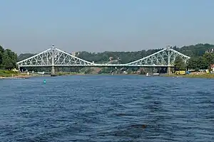 Le pont Forth a été achevé en 1890. Les poutres en treillis en forme de losange, reposant chacune sur quatre pieds, ont été érigées selon la méthode du porte-à-faux, puis reliées à des poutres de suspension. Seule la poutrelle centrale peut se déplacer longitudinalement sur ses fondations, tandis que les autres ne peuvent que faire tourner les colonnes sur leurs pieds. | |
