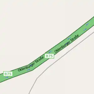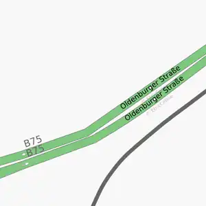 Dans le cas d'une chaussée double, vous devez dessiner une voie dans chaque direction et marquer chaque direction séparément. Positionnez les nœuds de façon aligné (comme sur l'exemple), cela donnera un meilleur résultat lorsque la carte sera rendue et indiquera clairement que les voies vont de pair.