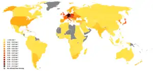 - ↑ 1.000 1.001 1.002 1.003 1.004 1.005 1.006 1.007 1.008 1.009 1.010 1.011 1.012 1.013 1.014 1.015 1.016 1.017 1.018 1.019 1.020 1.021 1.022 1.023 1.024 1.025 1.026 1.027 1.028 1.029 1.030 1.031 1.032 1.033 1.034 1.035 1.036 1.037 1.038 1.039 1.040 1.041 1.042 1.043 1.044 1.045 1.046 1.047 1.048 1.049 1.050 1.051 1.052 1.053 1.054 1.055 1.056 1.057 1.058 1.059 1.060 1.061 1.062 1.063 1.064 1.065 1.066 1.067 1.068 1.069 1.070 1.071 1.072 1.073 1.074 1.075 1.076 1.077 1.078 1.079 1.080 1.081 1.082 1.083 1.084 1.085 1.086 1.087 1.088 1.089 1.090 1.091 1.092 1.093 1.094 1.095 1.096 1.097 1.098 1.099 1.100 1.101 1.102 1.103 1.104 1.105 1.106 1.107 1.108 1.109 1.110 1.111 1.112 1.113 1.114 1.115 1.116 1.117 1.118 1.119 1.120 CIA World Factbook, last access on 1 November 2018