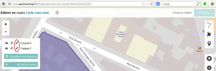 uMap peut utiliser les données externes à partir d'un lien URL (requête) vers Overpass – Cette méthode est plus adaptée pour les données qui changent souvent. Ainsi, elles seront mises à jour automatiquement.