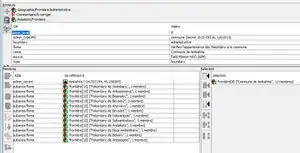 Double cliquer sur la relation commune dans la fenêtre Sélection - La fenêtre détaillant les fokontany de la commune s'ouvre, sélectionnez le fokontany concerné puis cliquez sur la poubelle sur la gauche (retirer l'élément de la relation).