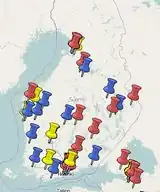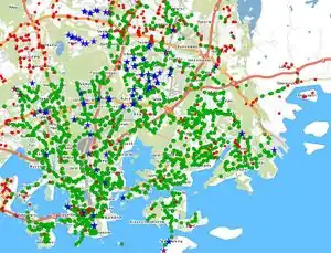 Map all HRT bus stops, see Finland:Helsinki/bus and Finland/helsinki bus stopHelsinki bus stops, Last updated November 19, 2009. This project is complete when all 2800 bus stops are on the map with correct "ref" tag.