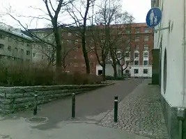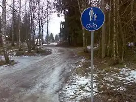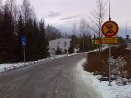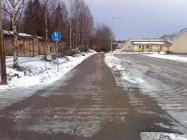 ↑The traffic sign "422 Pyörätie" forbids other vehicles from using the section and in some rare cases pedestrians should use such ways - but mostly there's a footway nearby, which the pedestrians should use.