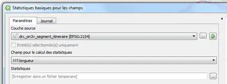 L’information qui nous intéresse est ici la somme de la longueur des entités de la table attributaire. Il s’agit donc de la longueur en mètres de l’itinéraire ON3V calculée à partir de la géométrie de la couche.
