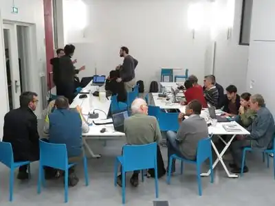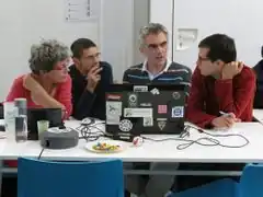 Après le tour de table habituel et l'explication du fonctionnement du groupe local, on s'est répartis en petits groupes pour que les anciens expliquent aux nouveaux les outils de contribution.