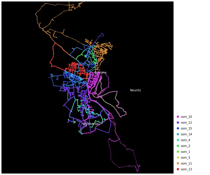 Dank der Unterstützung durch den InJoy-Med-Fitnessclub in Nimbschen, Leih-GPS-Geräten von B1 Systems / Linuxhotel / Geofabrik und des RV'99 Grimma gelang es den Initiatoren des Leipziger OSM-Stammtischs, die Erfassung Grimmas erheblich voranzubringen.