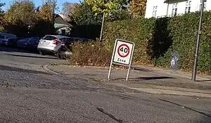 Skilte kan enten være et rundt skilt med en hastighedsgrænse. Så gælder hastigheden indtil der skiltes noget andet på samme vej.