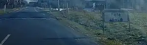 Byzoner markeres med et hvidt skilt med et sort relief under bynavnet.