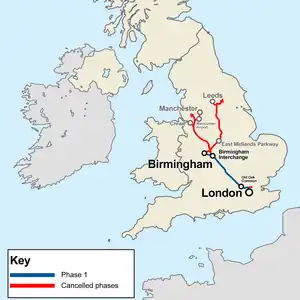 • Crewe (Phase 2a) - temporarily terminating in Crewe (proposed revamped Crewe Hub station project)