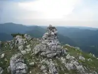 | man_made | cairn | An artificial pile of stones, often in a conical form. It is used by hikers, villagers, pilgrims, etc. as a mark to show the way, a border, or peak of mountain. |