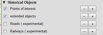 You may select which type of objects should be shown. Default is Points of Interest and Extended objects (line and area objects). There are some mutually exclusive experimental layers for historical roads, railways or boundaries. These are subject to change without further notice.