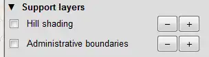 The + and - buttons control opacity. Minus means more transparent, Plus means more strong (better covers underlying layers).