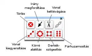 Egy pont törléséhez, válaszd ki a pontot, majd kattints az Törlés (Delete node) ikonra az ikonokat tartalmazó ablakocskán vagy nyomd meg a Delete (Backspace) billentyűt.