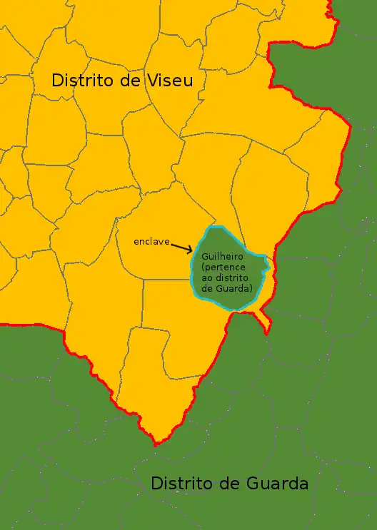 O distrito de Viseu, caso único em Portugal de um distrito com um enclave :