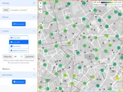 Screenshot of Is OSM up-to-date? showing nodes in Milano using different colours based on when they have been modified last time