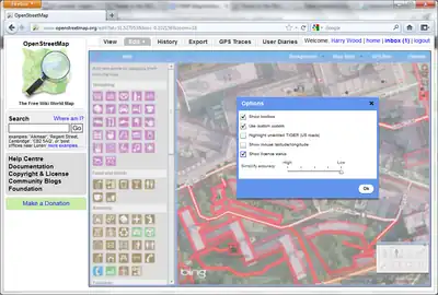 • Potlatch 2 ではこれはオプション機能として提供され、有効化することができます。Remapping#Potlatch 2を参照。 http://wtfe.gryph.de/ のサービスを使ってライセンスデータレイヤを生成しています。詳細は下記の#Potlatch 2 を参照