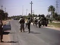 | 検問所。立ち入りが制限された区域に入る際に通る、民間人の来訪者や車両が軍事機関によってチェックされるところ。 |