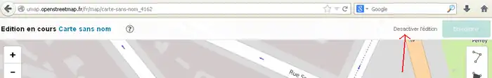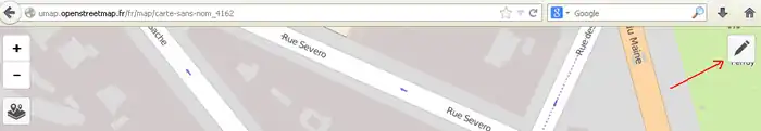 2) 左サイド7番目のボタンをクリックしてその右に開いた窓で「東京駅」などのように移動先を指定してエンターキーを押します。(2014/11/30現在、この機能はフランスの製品版インスタンスでは無効です。他(例えば http://umap.fluv.io )では有効です。)
