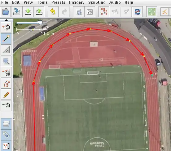- One way selected: The arc is "fused" into the selected way. The 3 last nodes in the way are used.