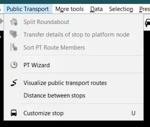 Two items have been added to JOSM Mode menu from the pt_assistant plugin: