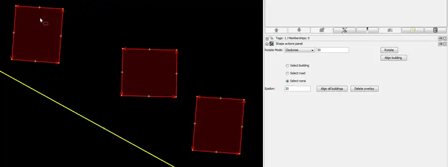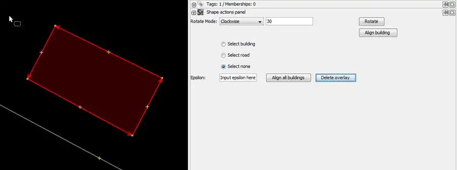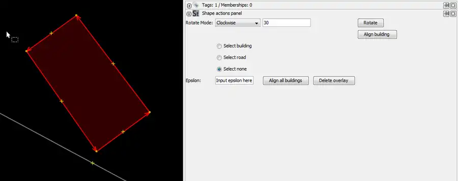 - Also, it allows the user to align a building with a road, by selecting the desired segment on the road, and a wall of the building.