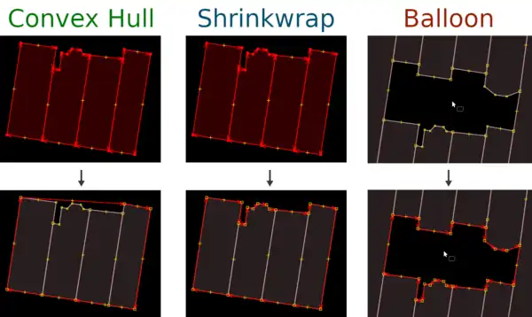 Shrinkwrap is a JOSM plugin that offers three actions to create: