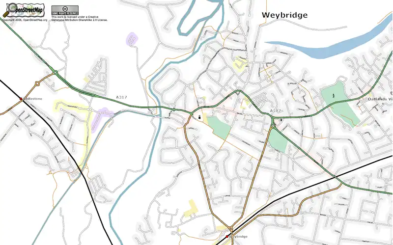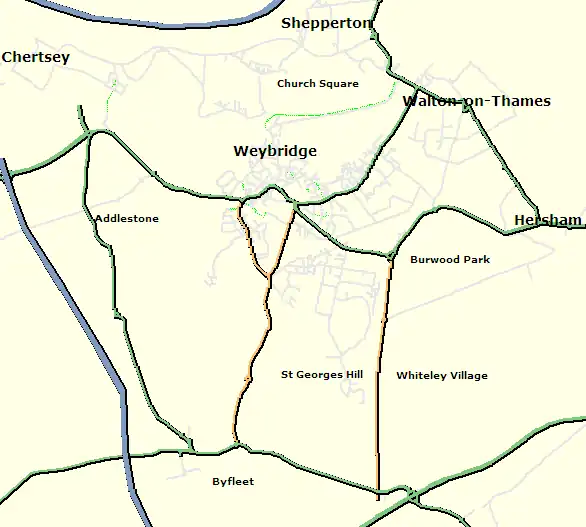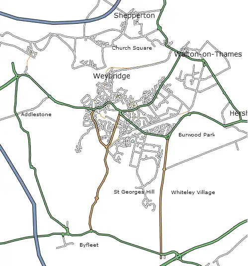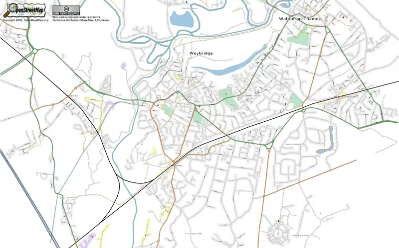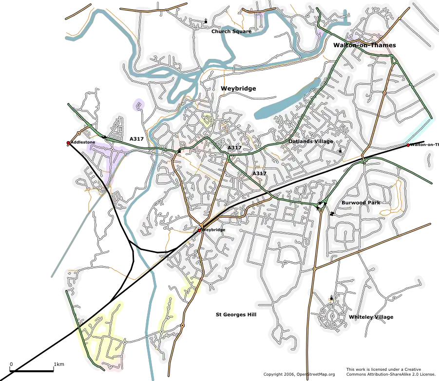 The Weybridge area as at 15 March 2006 (rendered using SVG in Firefox 1.5)