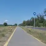 Kitűnő minőségű, aszfaltos, 2 sávos kerékpárút, kivilágítva (külterületen)