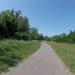 Közepes minőségű, beton lapokkal burkolt kerékpárút, melyen a Vízművek járművei közlekedhetnek (árvízvédelmi töltés)