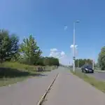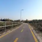 Jó minőségű, aszfaltos, sávok nélküli, kivilágított osztott kerékpárút, a gyalogúttól szintkülönbséggel elválasztva (külterületen)