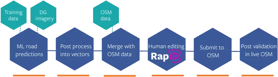- We start with human validation of the generated roads by the Facebook Mappers as explained in the “Submission Process.”