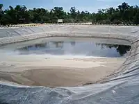 | settling | A settling basin. Settling basins are used to treat wastewater by settling. | |||